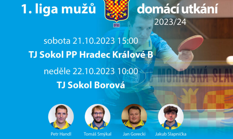 liga mužů V sobotu 21. 10. 2023 od 15:00 hrají s Hradcem Králové B a v neděli 22. 10. 2023 od 10:00 s Borovou.
